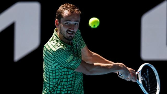 新华社照片,墨尔本(澳大利亚),2026年1月21日 1月21日,俄罗斯选手梅德韦杰夫在比赛中回球。 当地时间1月21日,在墨尔本进行的2026年澳大利亚网球公开赛男单第二轮比赛中,俄罗斯选手梅德韦杰夫3比1战胜法国选手阿里斯,晋级下一轮。 新华社记者 马平 摄