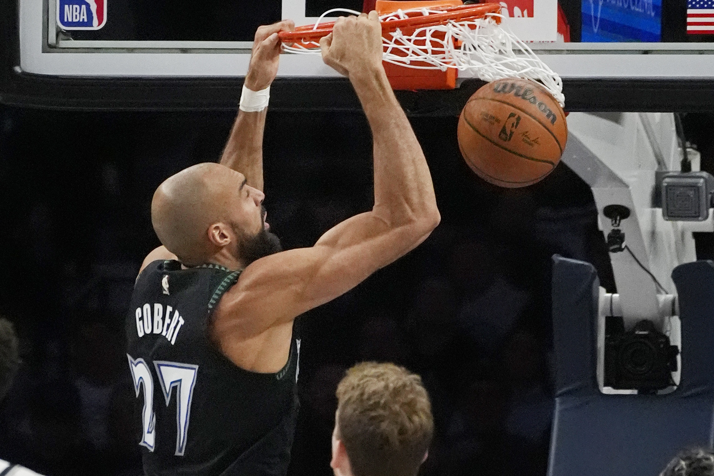 此役,戈贝尔出战35分钟,投篮8中5,罚球7中5,得到15分17篮板2助攻1抢断2盖帽。
